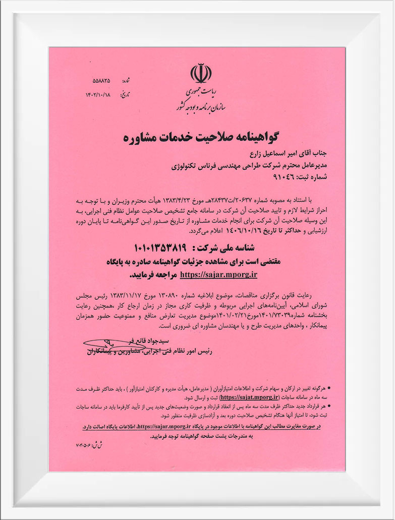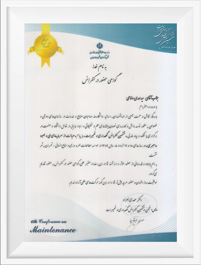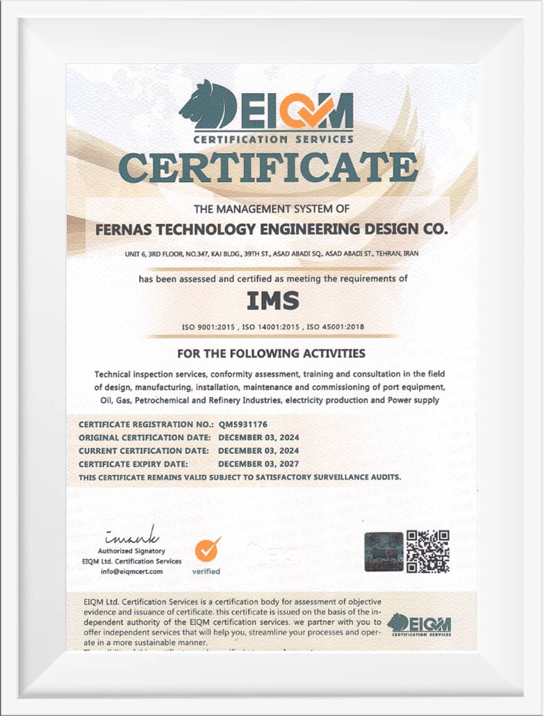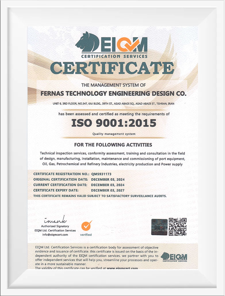 در همين راستا شركت موفق گرديد گواهينامه سيستم مديريت كيفيت ايزو ۲۰۰۸- ۹۰۰۱ را كسب نمايد.